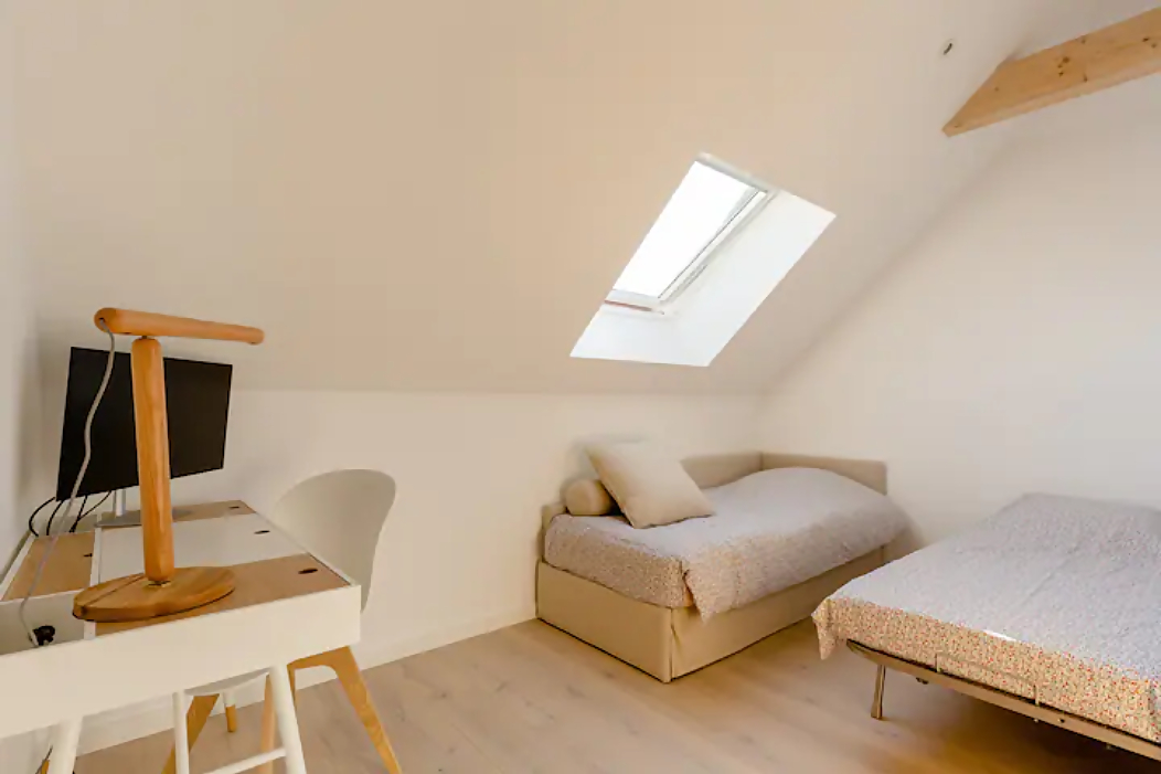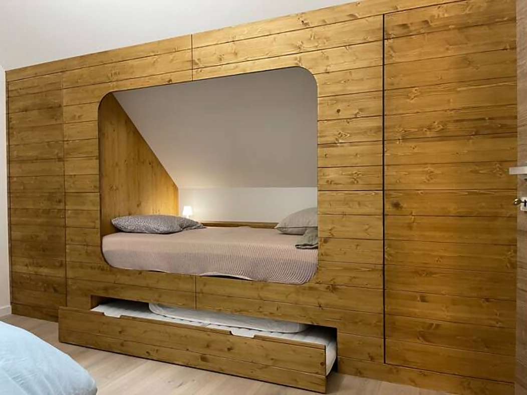 - Mezzanine with pull-out sofa bed (2× 90×190) and desk