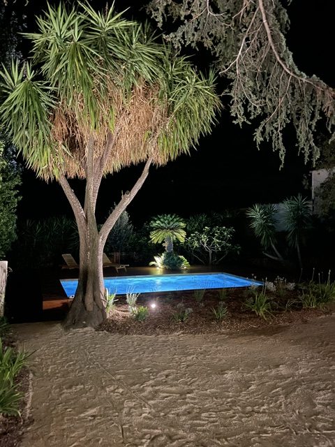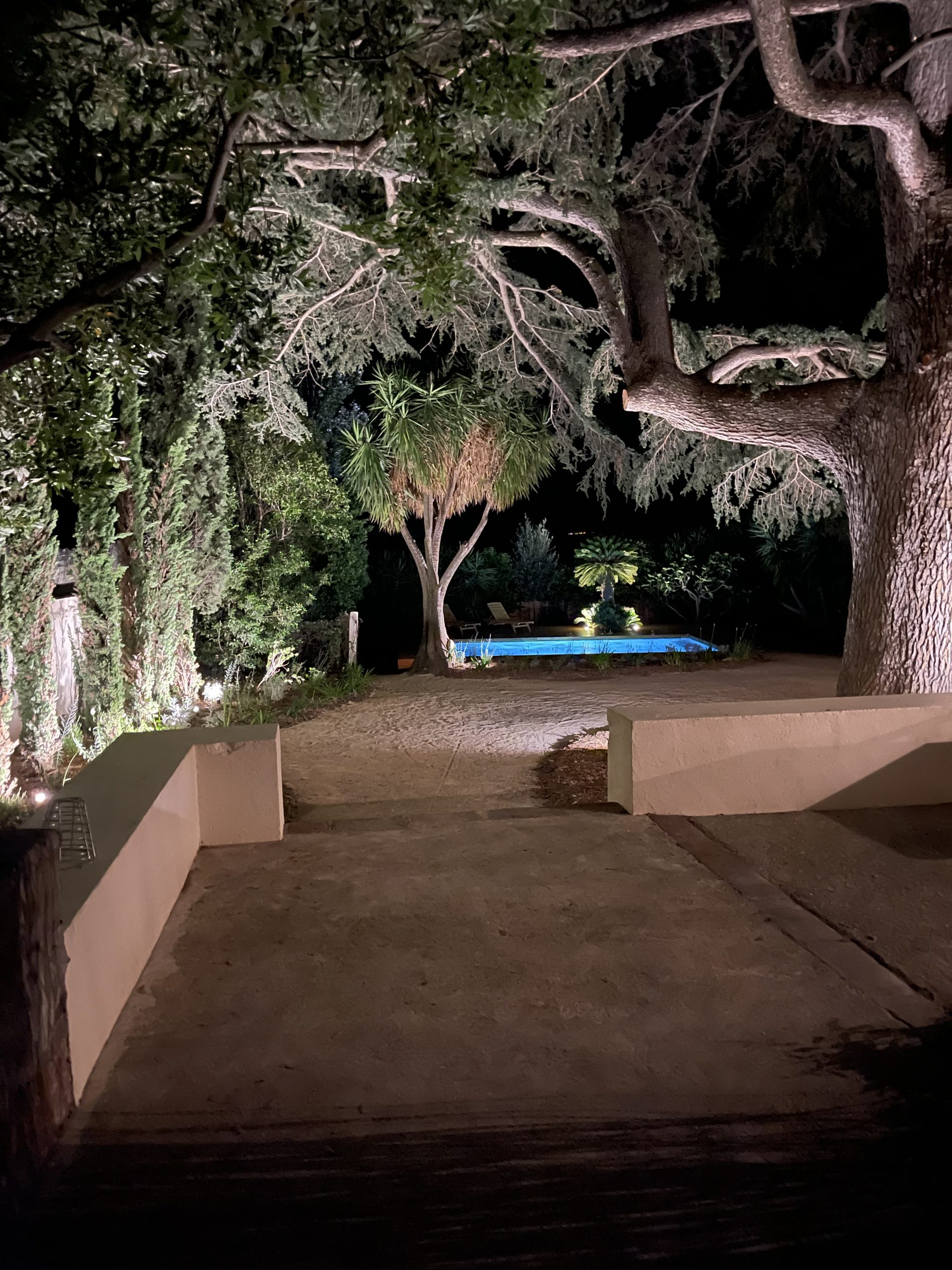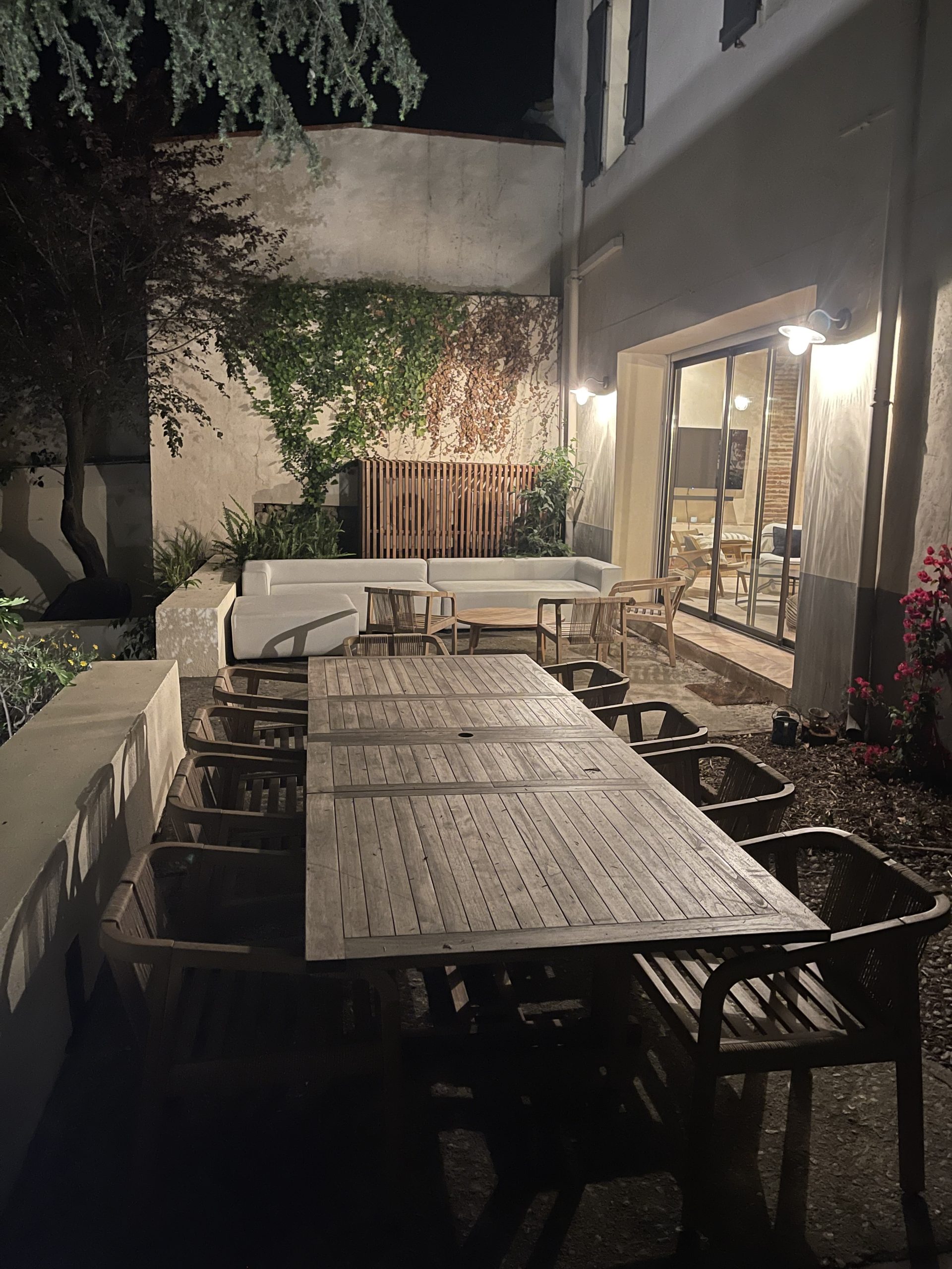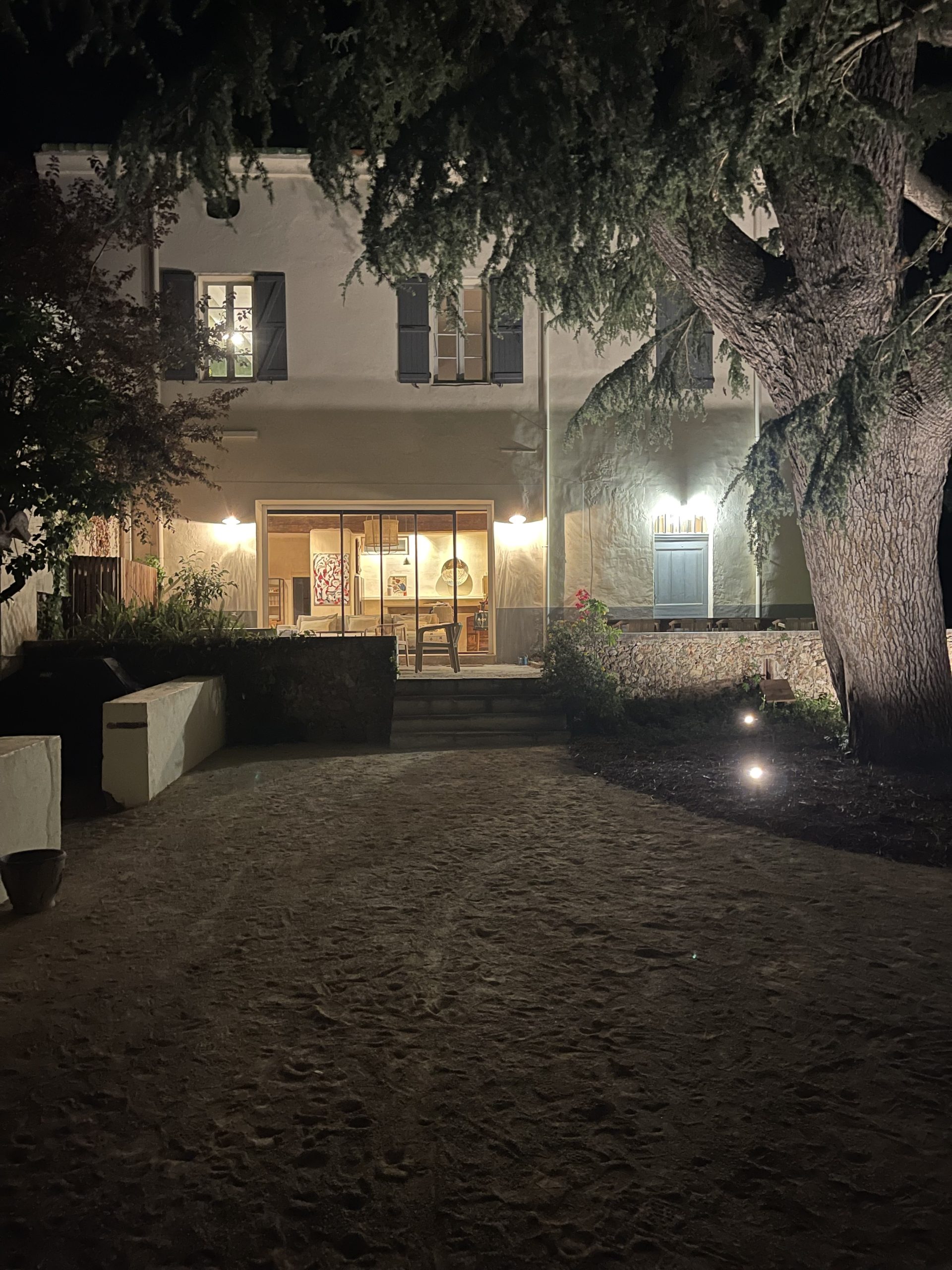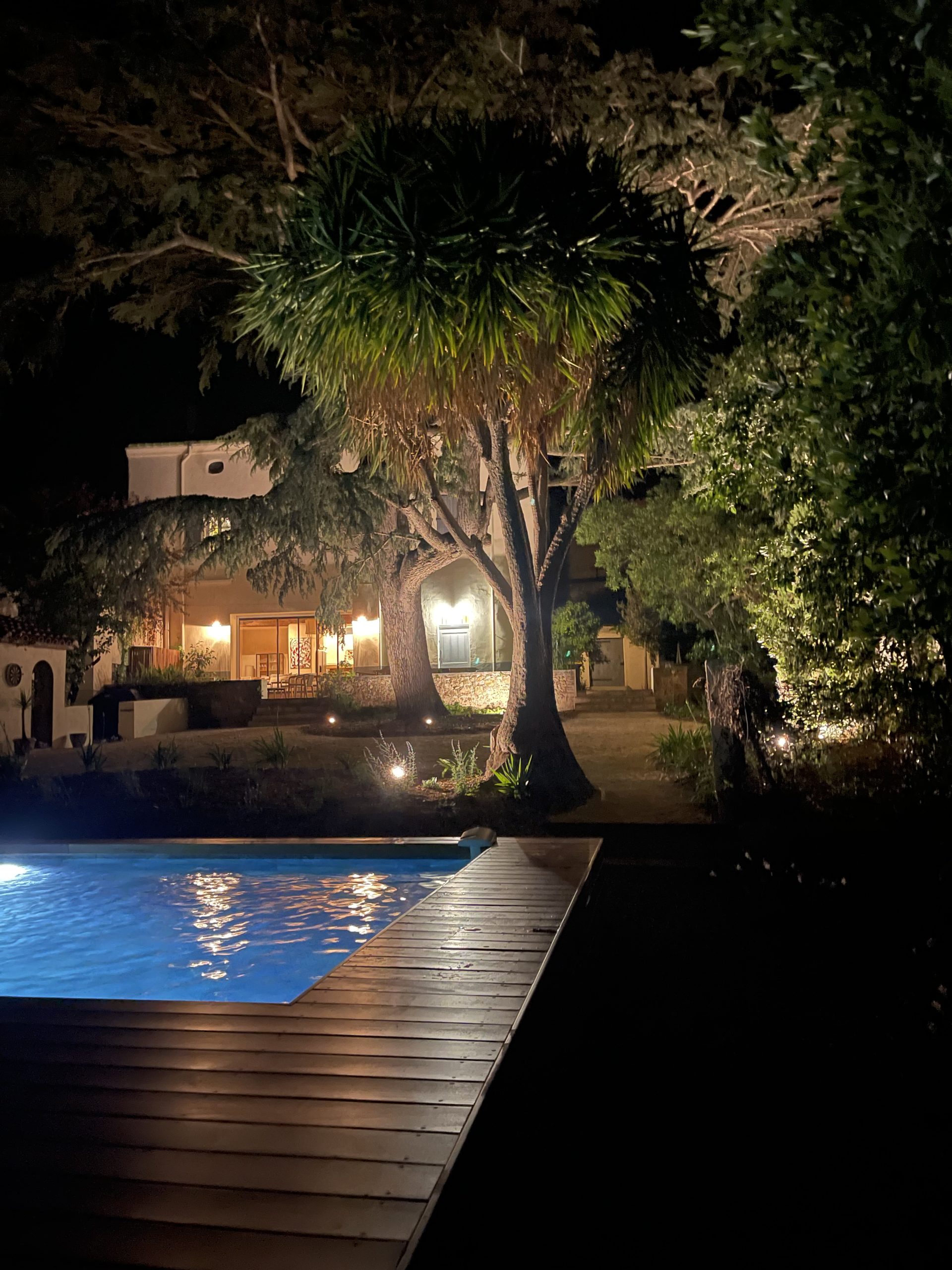 De jour, la maison s’ouvre largement sur le jardin, la piscine et les vignes. De nuit, elle devient un cocon lumineux où se succèdent apéritifs en terrasse, dîners prolongés et ciel étoilé sans pollution lumineuse.